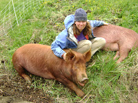I was a vegetarian for 20 years - mostly because I had deep concerns (and still do) about how most meat is raised and whether it is healthy for us, the animal and our world. But I know how this pork was raised - on organic grain (with plenty of garden/kitchen cuttings and some fresh goat's milk these past few weeks), on pasture and plenty hay in the winter, having plenty of space to move around and with love (mostly conveyed via scratching behind the ears and of course belly rubs).